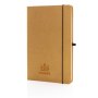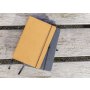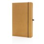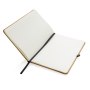 Фиксируйте все свои идеи и планы при помощи стильного блокнота формата А5, сделанного из переработанной кожи. Для записей предусмотрено 80 листов/160 страниц линованной переработанной бумаги белого цвета, плотность 70 г/м2. Закрывается при помощи резинки, есть держатель для ручки.