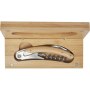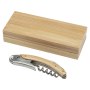 Нож официанта из нержавеющей стали со штопором и складным ножом для фольги и ручкой из натурального бамбука. Используемый бамбук поставляется и производится в соответствии со стандартами устойчивого развития.