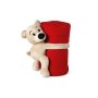 Флисовый детский плед с плюшевым мишкой, удерживающим одеяло.