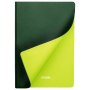 Ежедневник Latte New примечателен своим минималистичным, но завершенным и ярким дизайном. Выдающийся внешний вид аксессуара обусловлен удачным сочетанием оттенков зеленого. Гибкая обложка с закругленными уголками выполнена из приятного на ощупь, слегка прорезиненного материала. Она не образует заломов, не расслаивается и устойчива к повреждениям. Покрытие обложки имеет едва заметный блеск и мелкозернистый рисунок, имитирующий искусственную кожу. Яркий внешний вид создается контрастными элементами: насыщенный и свежий темно-зелёный, слегка припудренный цвет обложки сочетается с ярким лимонным цветом форзаца и среза. Форзац, нахзац и срез матовые. Кремовые скругленные страницы выполнены из шелковистого офсета. Они гармонично оттеняют свежесть основных цветов, уравновешивая цветовую композицию. Гладкое атласное лимонное ляссе с легким отливом выполнено в тон форзаца.