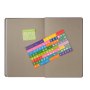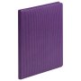 Недатированный ежедневник отличается современным технологичным дизайном и оригинальным цветовым ансамблем. Гибкая матовая обложка со скругленными уголками выполнена из искусственной кожи, имитирующей покрытие в стиле Hi-Tech. Переплетный материал с вертикальным рифлением, бархатистый, со слегка прорезиненным эффектом. За счет интересной рельефной фактуры прослеживается игра цвета при перемене освещения. Цвет – фиолетовый, насыщенный, плотный, однородный. Создает органичный природный тандем с матовыми форзацем и нахзацем серого цвета. Срез матовый, в тон обложки. Страницы со скругленными уголками приятного глазу теплого светло-кремового цвета. Выполнены из гладкого шелковистого офсета. Ежедневник дополнен двойным атласным ляссе из лент серого и фиолетового цветов, имеющих глянцевый отлив.