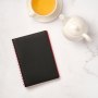 Цвет – черный, насыщенный, динамичный, однородный. Внутренний материал обложки – Latte – бархатистый, мелкозернистый, ярко-красного цвета.