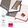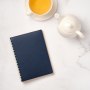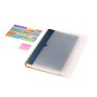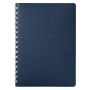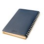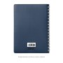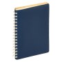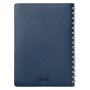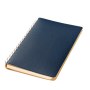 Недатированный ежедневник в гибкой обложке со скругленными уголками из искусственной кожи. Обложка выполнена из сшивки двух материалов. Внешний материал обложки – матовый, с некрупным рельефом под натуральную кожу. Цвет – синий, насыщенный, динамичный, однородный. Внутренний материал обложки – Latte – бархатистый, мелкозернистый, однородного бежевого цвета. По периметру обложки выполнена прошивка в тон. Форзац и нахзац контрастные, бежевого цвета. Теплые кремовые страницы со скругленными уголками выполнены из гладкого шелковистого офсета. Срез матовый, в тон страниц. Ежедневник надежно скреплен полускрытой пружиной в цвет внутреннего материала обложки. Изделие комплектуется вкладышем с цветными стикерами и индивидуальной упаковкой.