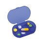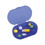 Компактный футляр для витаминов и таблеток выполнен из прочного синего пластика и имеет три отделения. С таким футляром очень удобно распределять время приема необходимых лекарств на утро, день и вечер. Изделие будет незаменимо в дороге и во время различных поездок.
