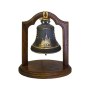 Колокол сувенирный весом 1кг "Всея Руси" на дубовой подставке. Поверхность колокола черненая с вызолочением.