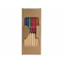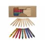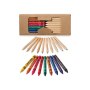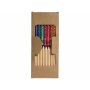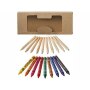 9 цветных восковых карандашей и 10 цветных карандашей в картонной коробке с пластиковым окошком.