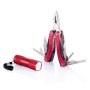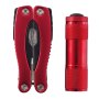 Дорожный набор из 2-х предметов: мультитул и фонарик. Мультитул - это многофункциональный инструмент из нержавеющей стали с алюминиевой анодированной рукояткой с 14 функциями: нож с большим лезвием, нож с малым лезвием, пила, открывалка, консервный нож, отвертка, пассатижи и др. И фонарик в алюминиевом корпусе, с 9 белыми светодиодами.