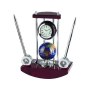 Настольный прибор «Сенатор» – образец делового аксессуара. Такой прибор можно разместить в офисе или личном кабинете. Он не только будет способствовать стильному оформлению обстановки, но и станет выполнять практические функции. В настольный прибор «Сенатор» входят две авторучки, которые удобно использовать на переговорах и совещаниях. Деревянную подставку аксессуара также украшают глобус и часы, которые помогут обладателю подарка оставаться пунктуальным.