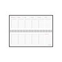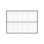 Недатированный планинг выпускается размером 305*130 мм и содержит 208 страниц (блок 295х100 мм). Для них выбрана высококачественная белая мелованная бумага плотностью 70 грамм. Разворот представляет собой разметку на 7 дней недели с графами с указанием времени. Первые 15 страниц содержат справочные сведения из различных областей. Крепление листов на открытом гребне способствует быстрому переходу по страницам.