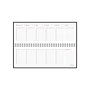 Недатированный планинг выпускается размером 305*130 мм и содержит 208 страниц (блок 295х100 мм). Для них выбрана высококачественная белая мелованная бумага плотностью 70 грамм. Разворот представляет собой разметку на 7 дней недели с графами с указанием времени. Первые 15 страниц содержат справочные сведения из различных областей. Крепление листов на открытом гребне способствует быстрому переходу по страницам.