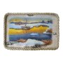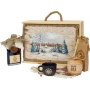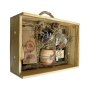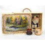 Подарочный набор в уникальном деревянном коробке с рисунком на бересте:: безалкогольный бальзам “Сибирь”, зеленый чай из целебных, сибирских трав, настоящий сибирский мед в бочонке, кедровая ложка, льняная салфетка, керамическая чашка.