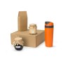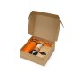 Набор состоит из термокружки, баночки крем-мёда с кокосом и миндалём, варенья из лесной черники, чёрного чая. Набор упакован в крафтовую картонную коробку с бумажным наполнителем.