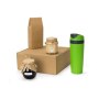 Набор состоит из термокружки, баночки крем-мёда с кокосом и миндалём, варенья из лесной черники, чёрного чая. Набор упакован в крафтовую картонную коробку с бумажным наполнителем.