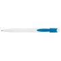 Стильная пластиковая ручка с ярким цветным клипом и белым корпусом отлично подойдет для нанесения логотипов и рекламной информации. Нажимной механизм.