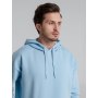 Классическая модель унисекс с карманом-"кенгуру". Внутренняя сторона из мольтона с начесом. Капюшон с металлическими люверсами и плетеной тесьмой тон в тон, укрепляющая тесьма по вороту сзади. Манжеты и низ изделия в резинку с эластаном.