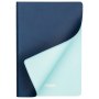 Дизайн ежедневника Latte NEW выполнен в интересном цветовом решении. Минималистичный, но завершенный внешний вид достигается за счет удачного сочетания оттенков синего. Обложка выполнена из мягкого, слегка прорезиненного материала, имитирующего искусственную кожу. Гладкая и приятная на ощупь, она имеет едва заметный блеск. Мелкозернистое покрытие имеет глубокий, однородный и слегка припудренный темно-синий цвет. Форзац и нахзац матовые, голубые, гармонично дополняют основной цвет аксессуара. Страницы теплые, кремовые, со скругленными уголками. Выполнены из нежного шелковистого офсета.