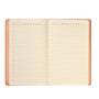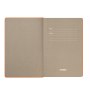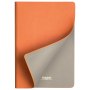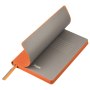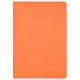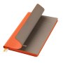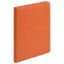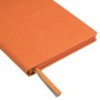 Недатированный ежедневник выполнен в лаконичном современном дизайне. Привлекает внимание яркой, сочной, позитивной тональностью. Гибкая матовая обложка со скругленными уголками выполнена из искусственной кожи, имитирующей покрытие в стиле Hi-Tech. Переплетный материал с вертикальным рифлением, бархатистый, со слегка прорезиненным эффектом. За счет интересной рельефной фактуры прослеживается игра цвета при перемене освещения. Цвет – насыщенный оранжевый, густой, плотный, однородный. Создает необычный красивый контраст с матовыми форзацем и нахзацем серого цвета. Срез матовый, в тон обложки. Страницы со скругленными уголками приятного глазу теплого светло-кремового цвета. Выполнены из гладкого шелковистого офсета. Ежедневник дополнен двойным атласным ляссе из лент серого и оранжевого цветов, имеющих глянцевый отлив.